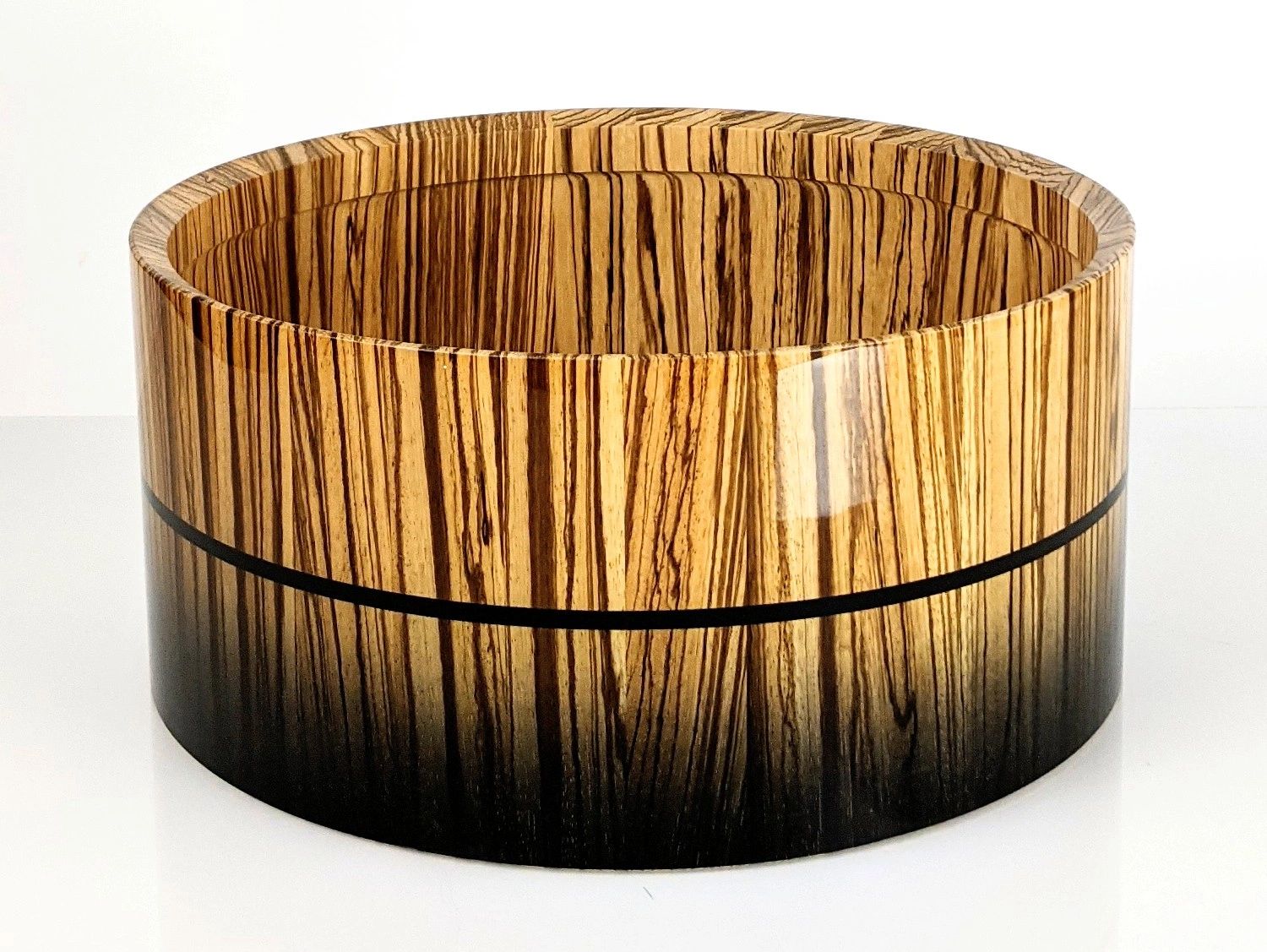 This resonant stave snare shell has 1/2" milled in re-rings with the center milled thinner to 1/4" for a wide tuning range.